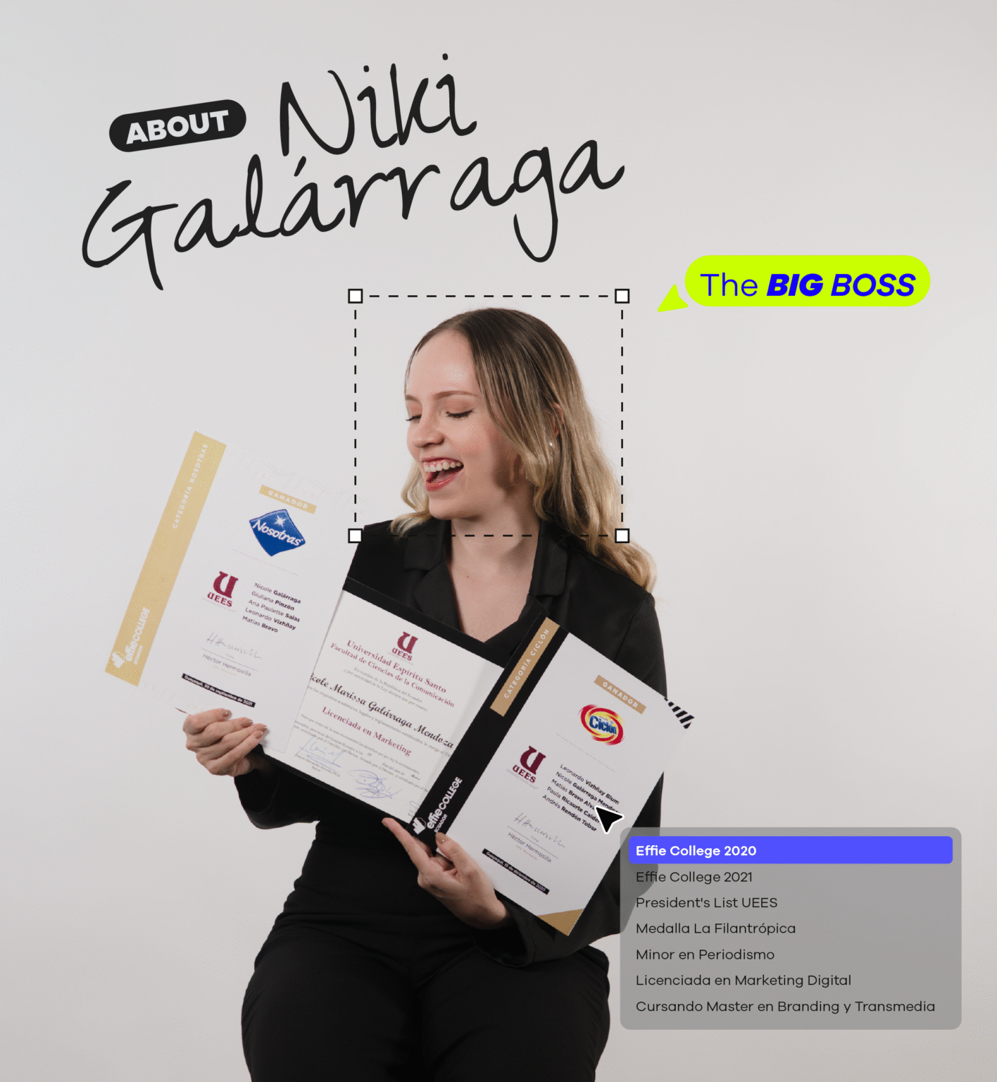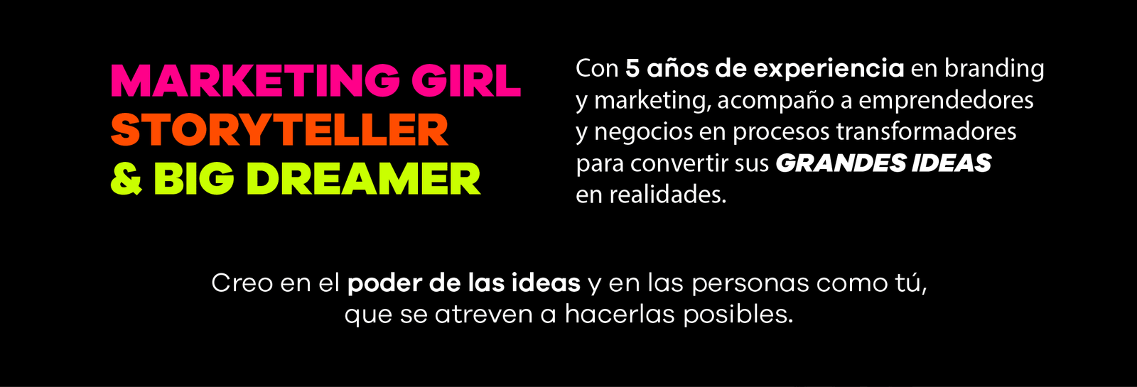Con 5 años de experiencia en branding y marketing, acompaño a emprendedores y negocios en procesos transformadores para convertir sus GRANDES IDEAS